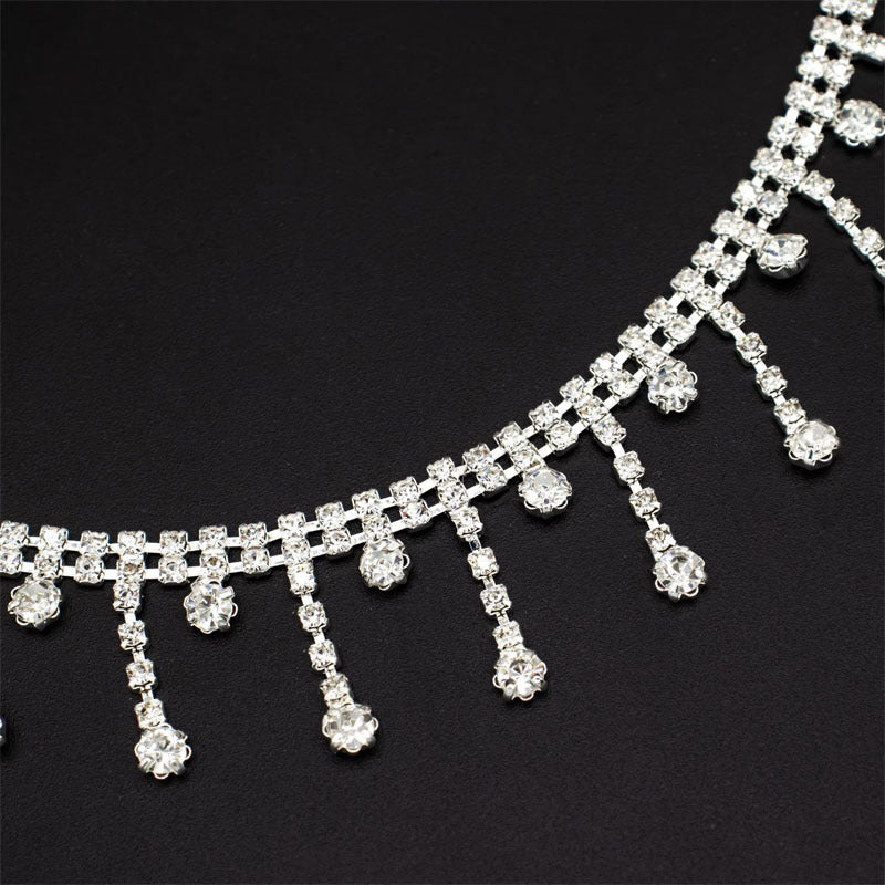 Fashionable and elegant women's silver tassel glass rhinestone collarbone chain details
