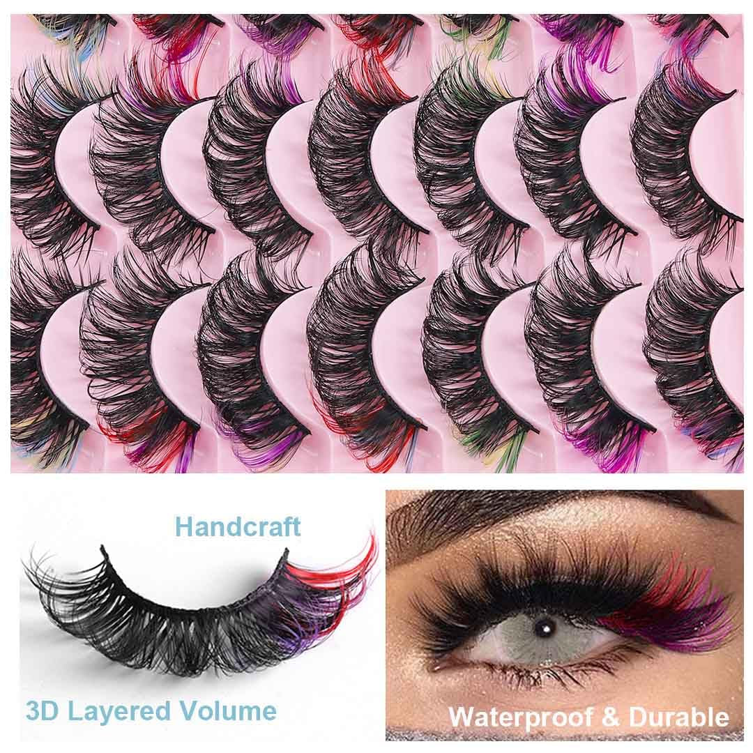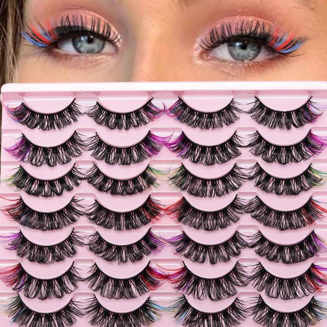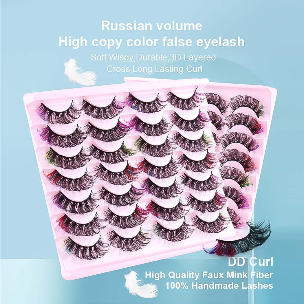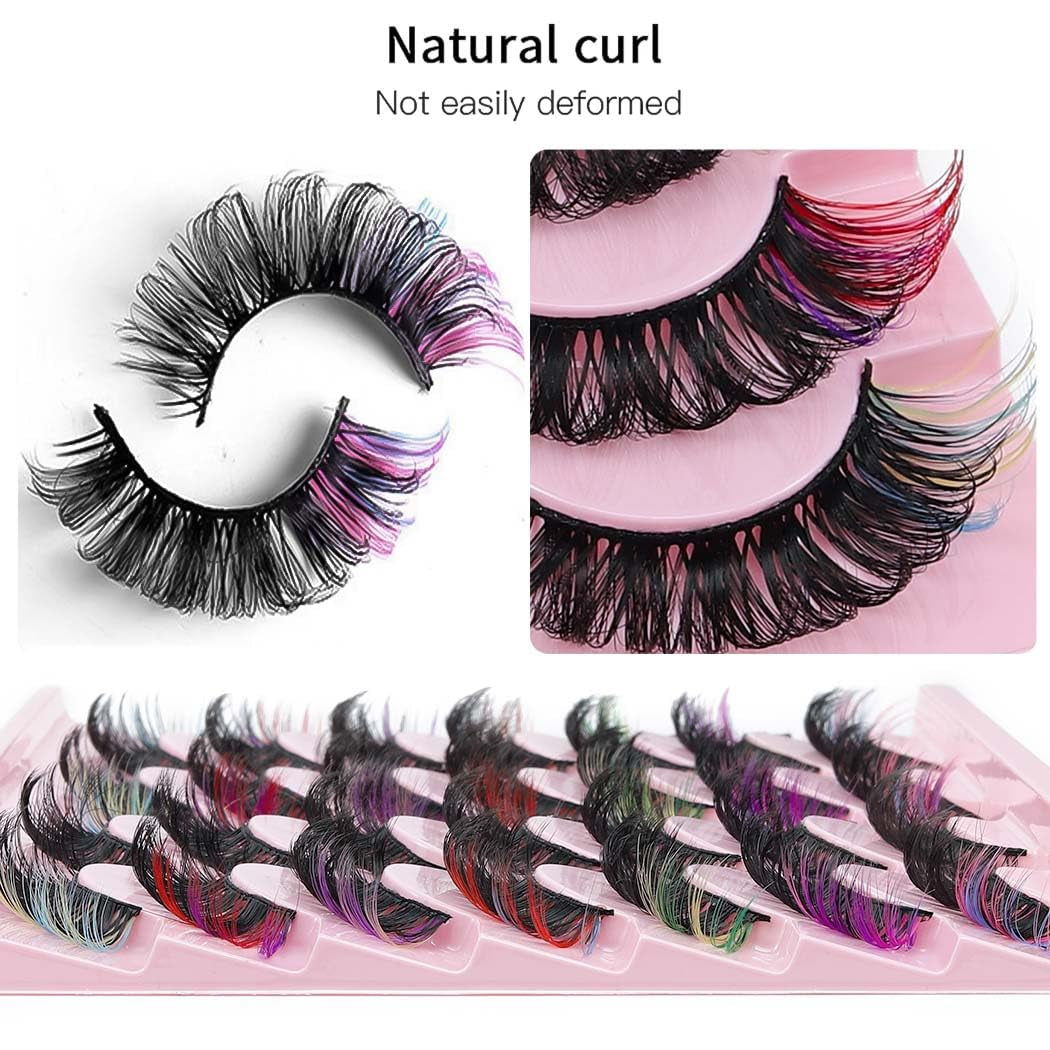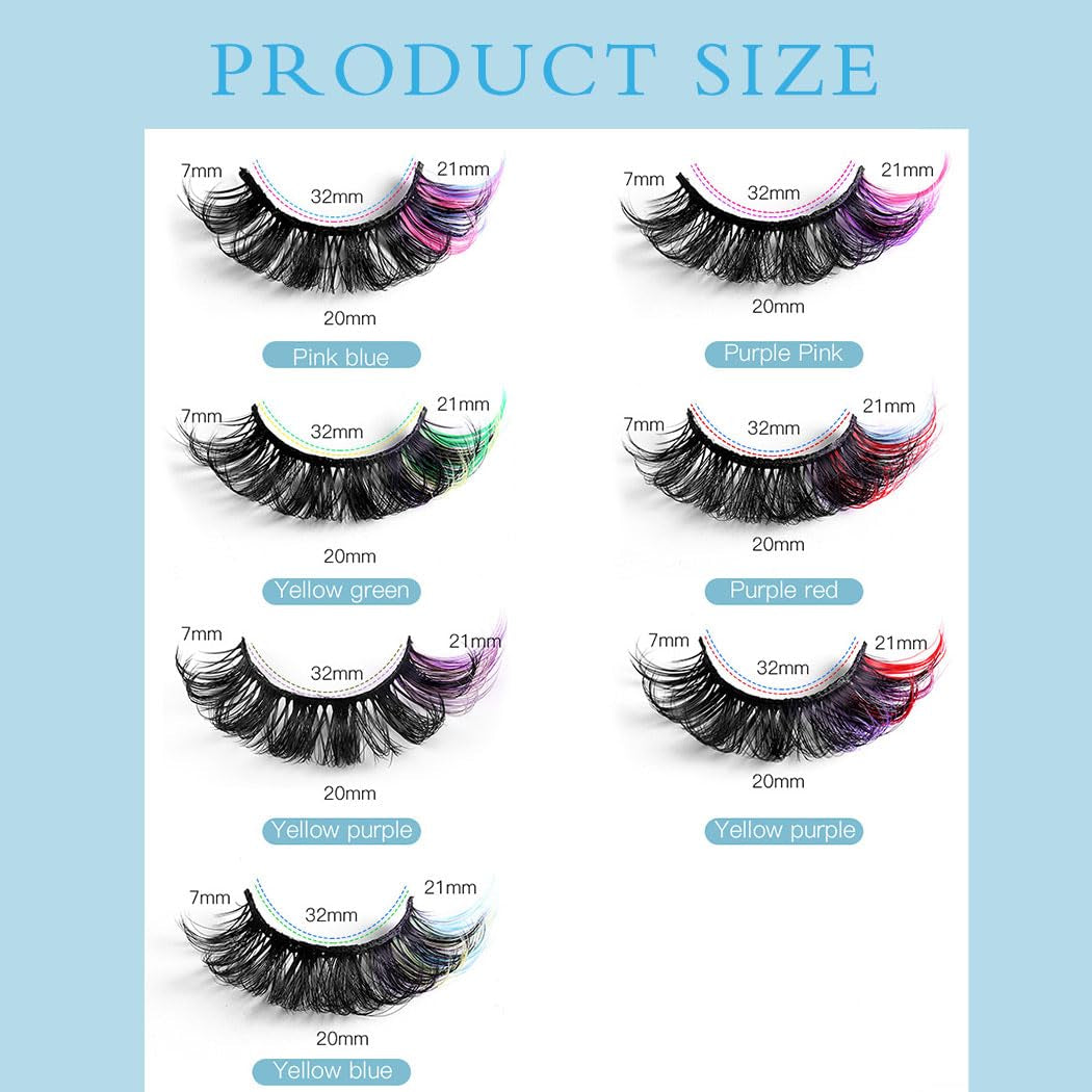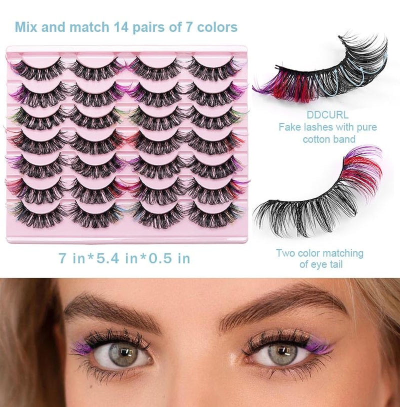 Uranian 14 Pairs Colorful False Eyelashes Faux Mink False Eyelashes with Color Uranian Colored Lashes Faux Mink Eyelashes Russian Strip Lash for Women and Girls About us: Uranian focus on beauty supplies and daily accessories. Committed to good services to customers. Hope to bring you a good shopping experience. Features: 1. 14 pairs, 7 colors, match your different makeup looks. 2. 10/10 handmade, vegan and cruelty free. 3. Soft, skin-friendly and reusable. 4. Natural look and light weight, Easy to wear. How to use: 1. Remove the eyelashes from the box, trim the eyelashes to fit your eyes. 2. Adjust the false eyelashes to fit your eye curve. 3. Apply eyelashes glue to the root of the false eyelashes. 4. When the glue dries slightly, press the fake eyelashes firmly against the roots of the natural lashes. Thank you for choose Uranian!