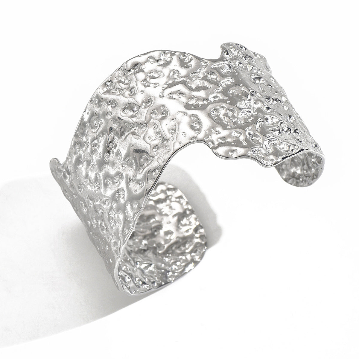 Surface treatment: The surface of the bracelet has a distinct hammering effect, which increases the texture and visual layering.