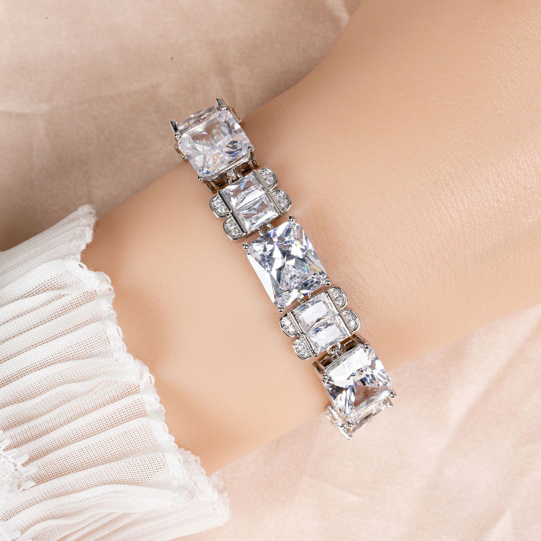 Wish Simple Colored Gems Zircon Small Square White Zircon Bracelet